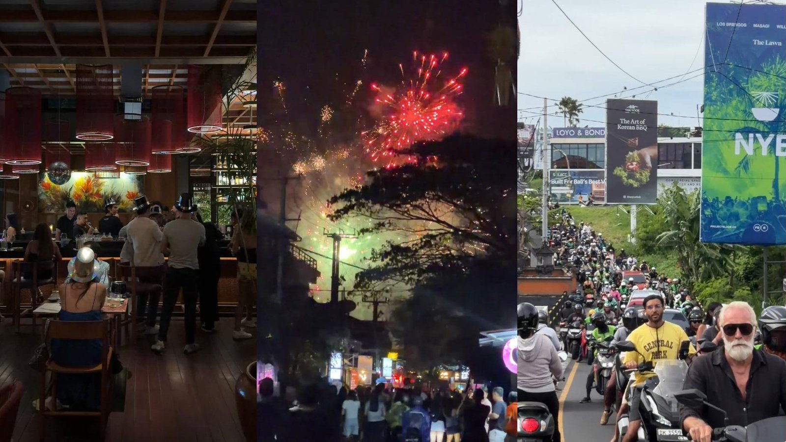 Lalu langit menyala. Kembang api meledak, sorak pecah, dan Bali kembali menjadi latar yang sempurna untuk euforia kolektif. Beberapa detik kemudian, gelap datang lagi. Keramaian perlahan bergerak, meninggalkan sisa suara, sampah, dan kelelahan yang tidak selalu terlihat di layar.