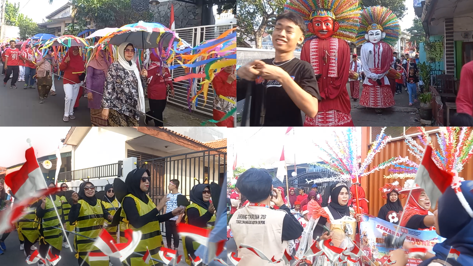 Depok, Jabar (Rumah Simbah)-Minggu pagi 17 Agustus 2025 di sejumlah ruas jalan wilayah Kelurahan Tugu, Cimanggis, Depok begitu semarak karena dilintasi pawai hari kemerdekaan.