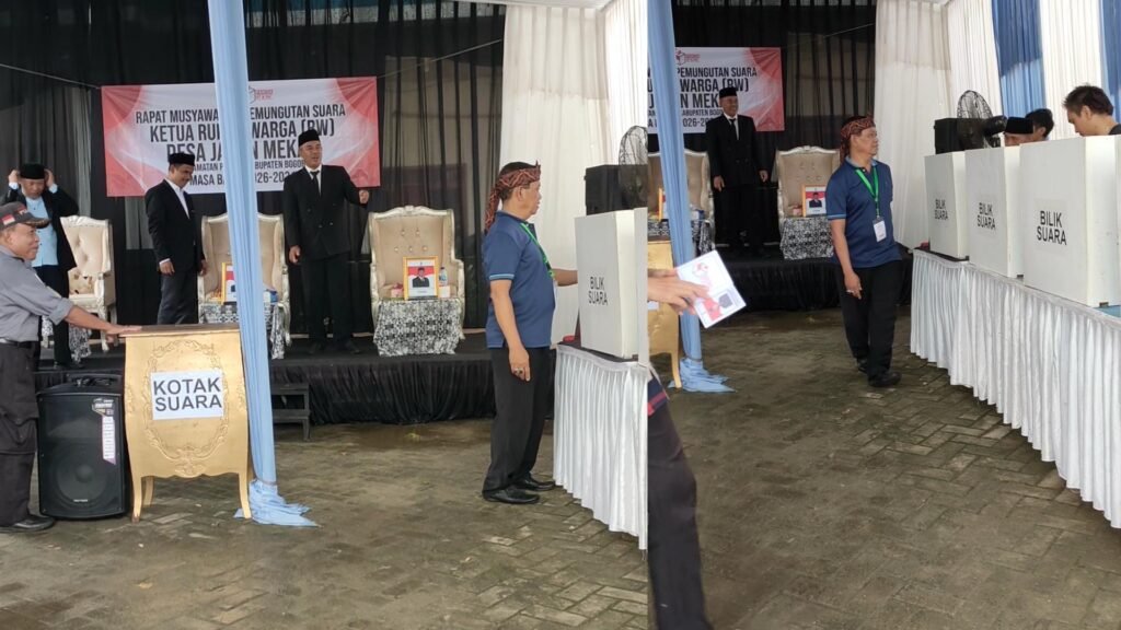 Pemilihan ketua RW 3 di Desa Jabon Mekar berlangsung layaknya pesta rakyat. Dari posko pemenangan yang ramai selama sepekan hingga antrean pemilih di bawah gerimis