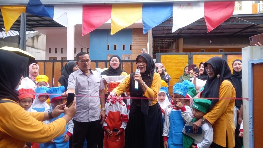 Kepala TK Sumber Harapan Siti Salibah meresmikan gelaran “Market Day”, Sabtu (18/1) di Cimanggis, Depok. (Rumah Simbah/Rika) Depok (Rumah Simbah)-Waktu kecil dulu, kalian ada yang